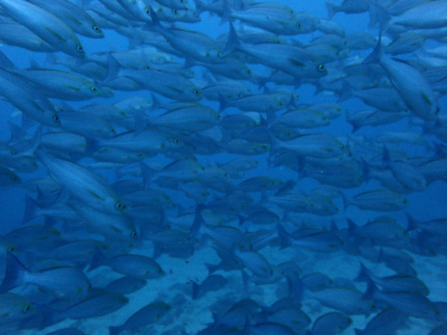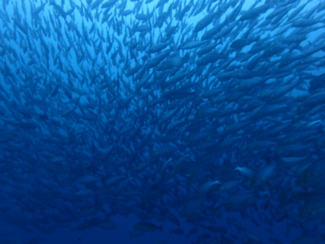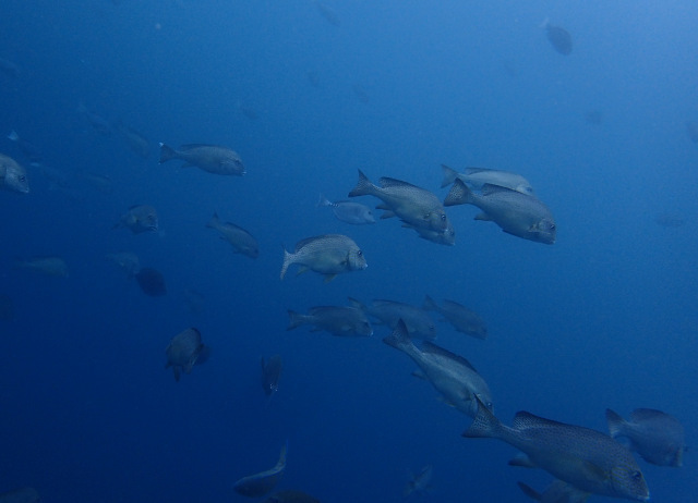キビナゴの群れとカンパチ達がここでも、表層から中層で賑やかに踊っていた。
