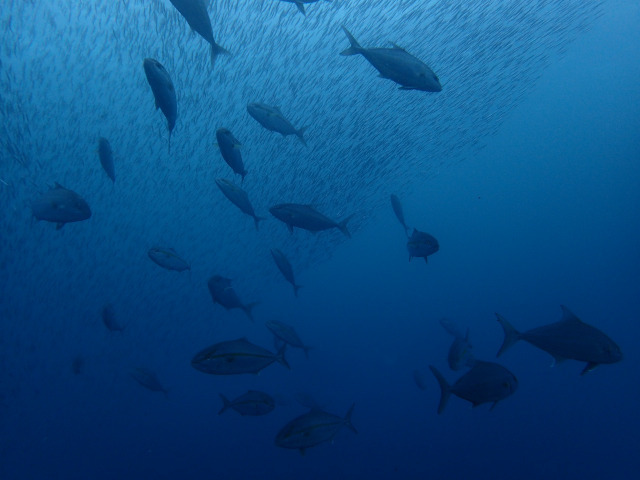 表層~中層では、キビナゴの群れとカンパチの群れがグルグルしていた。