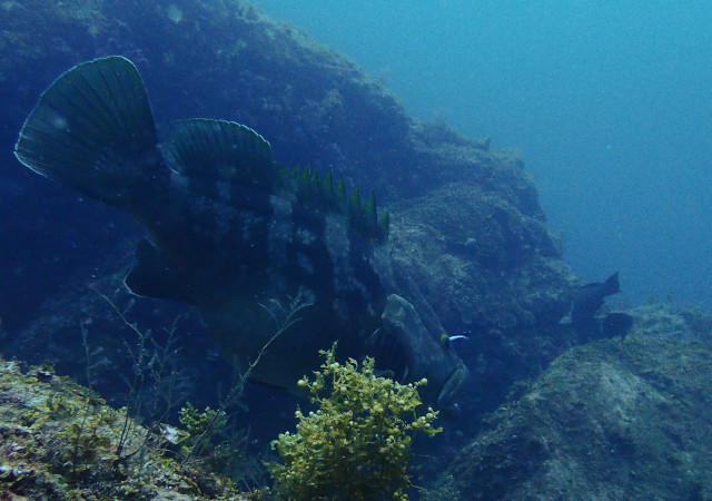 そこから藻場の方へ向かっていると、大きなクエが泳いでいる。