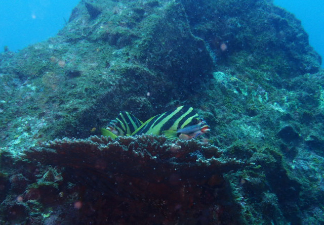 オビテンス、テングハギの幼魚、ネジリンボウ等を見て、メインの根へ。