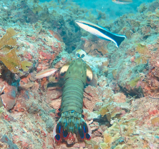 根の上でイソギンチャクやクマノミ、モンハナシャコ、等を眺めて安全停止へ。
