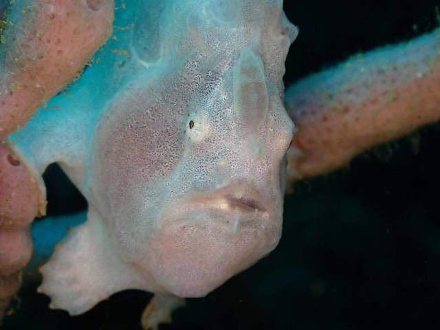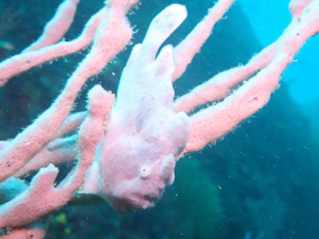水路を抜けて、ジュヅエダカリナについているカエルアンコウ。