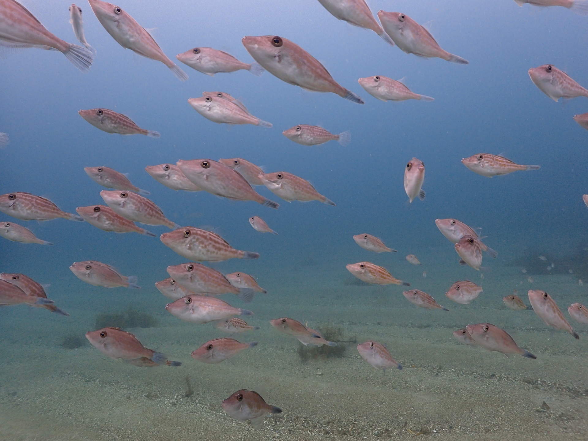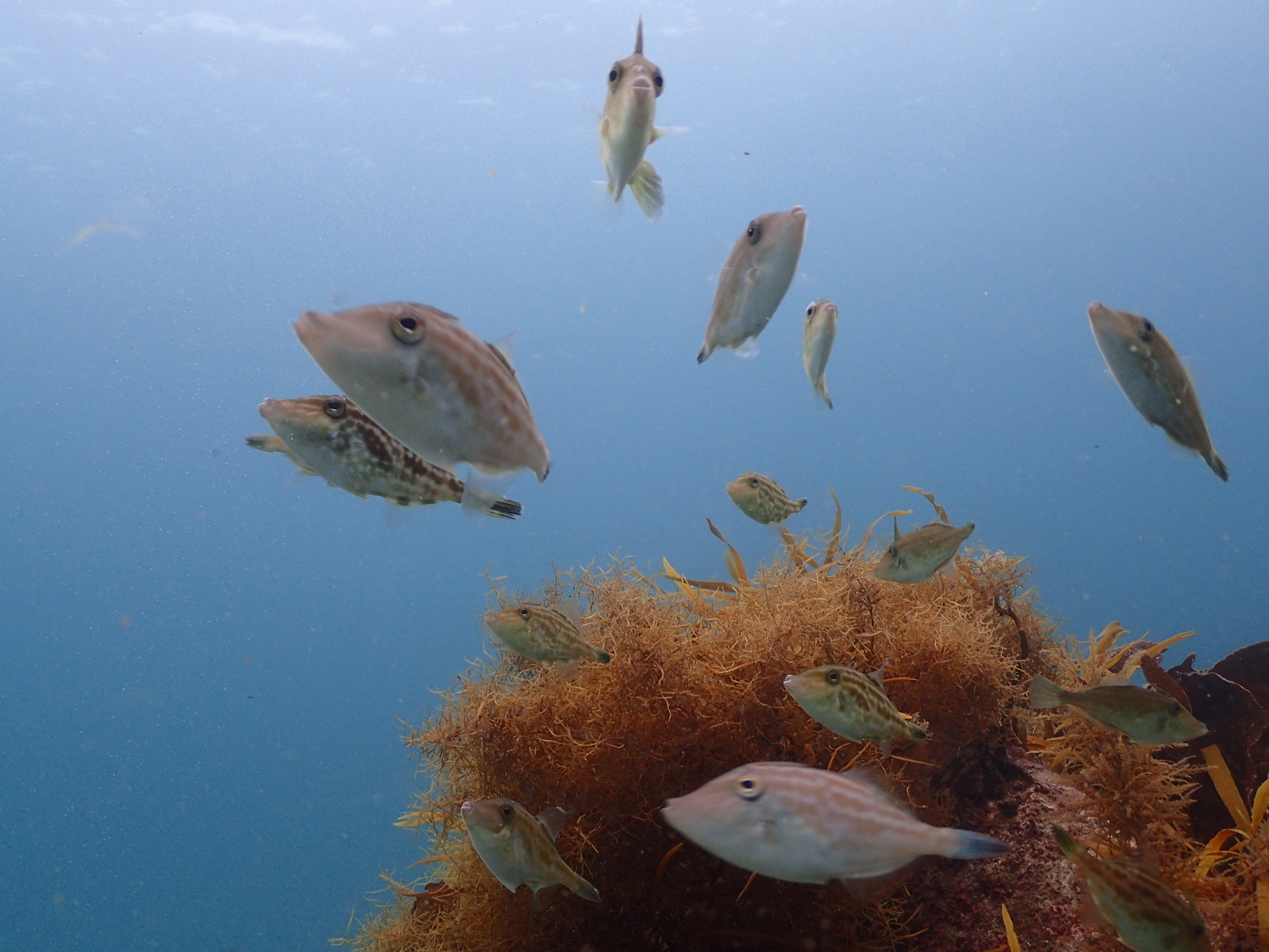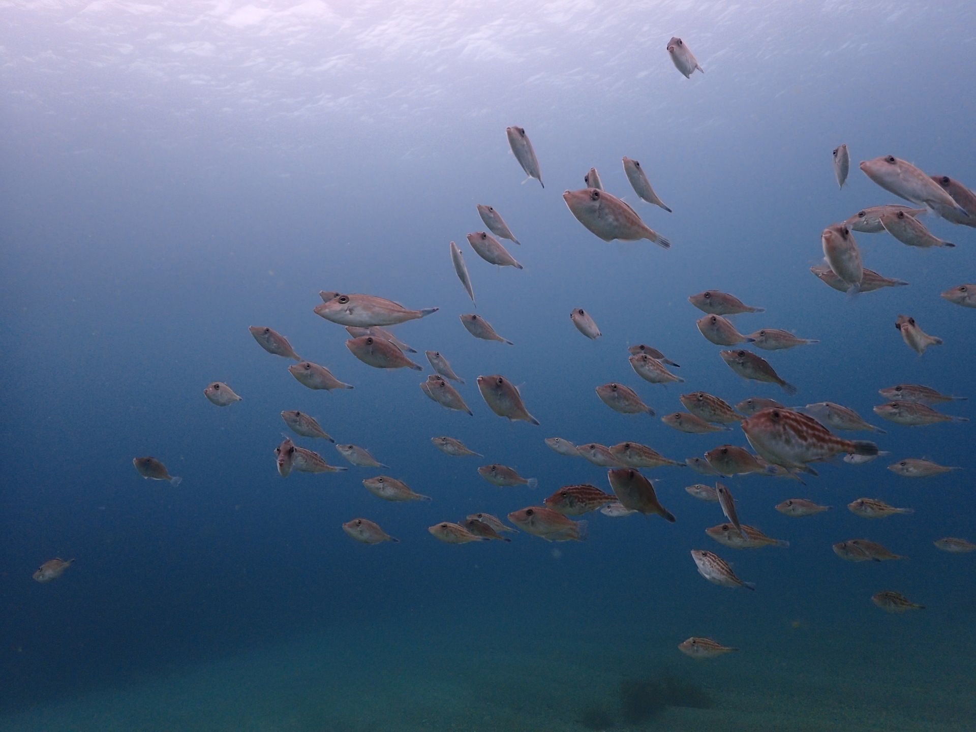 ボチボチ引き返そうか…と、していた頃に、ウマズラハギの幼魚達の群れが登場。