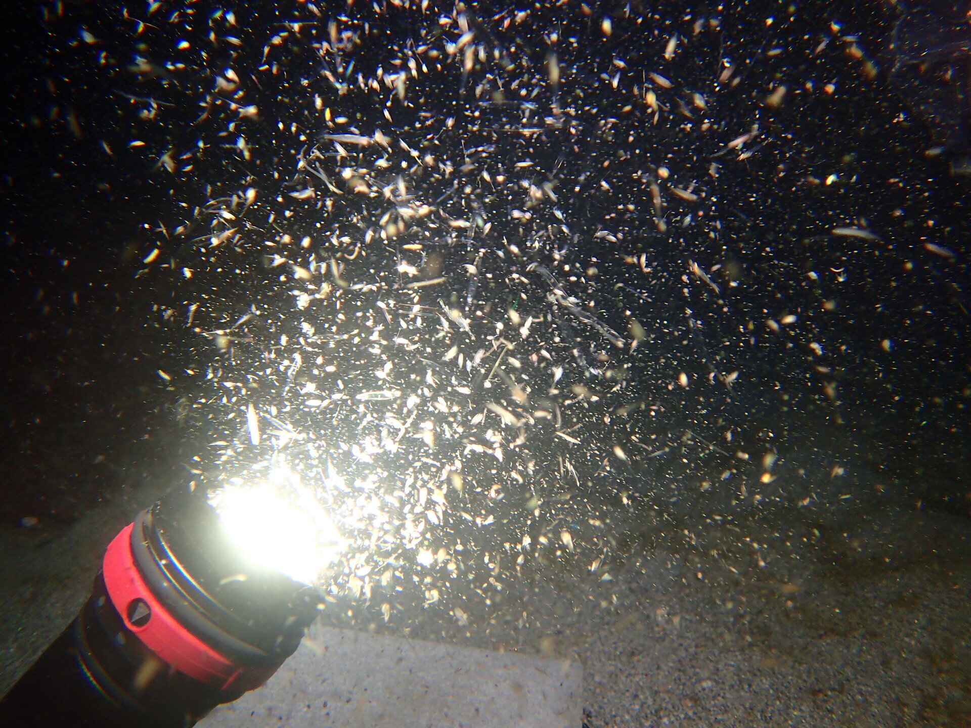 光に寄せられた、プランクトンでしょうか、なにやら、よく見えない者たちが、わさわさ集まっていました。