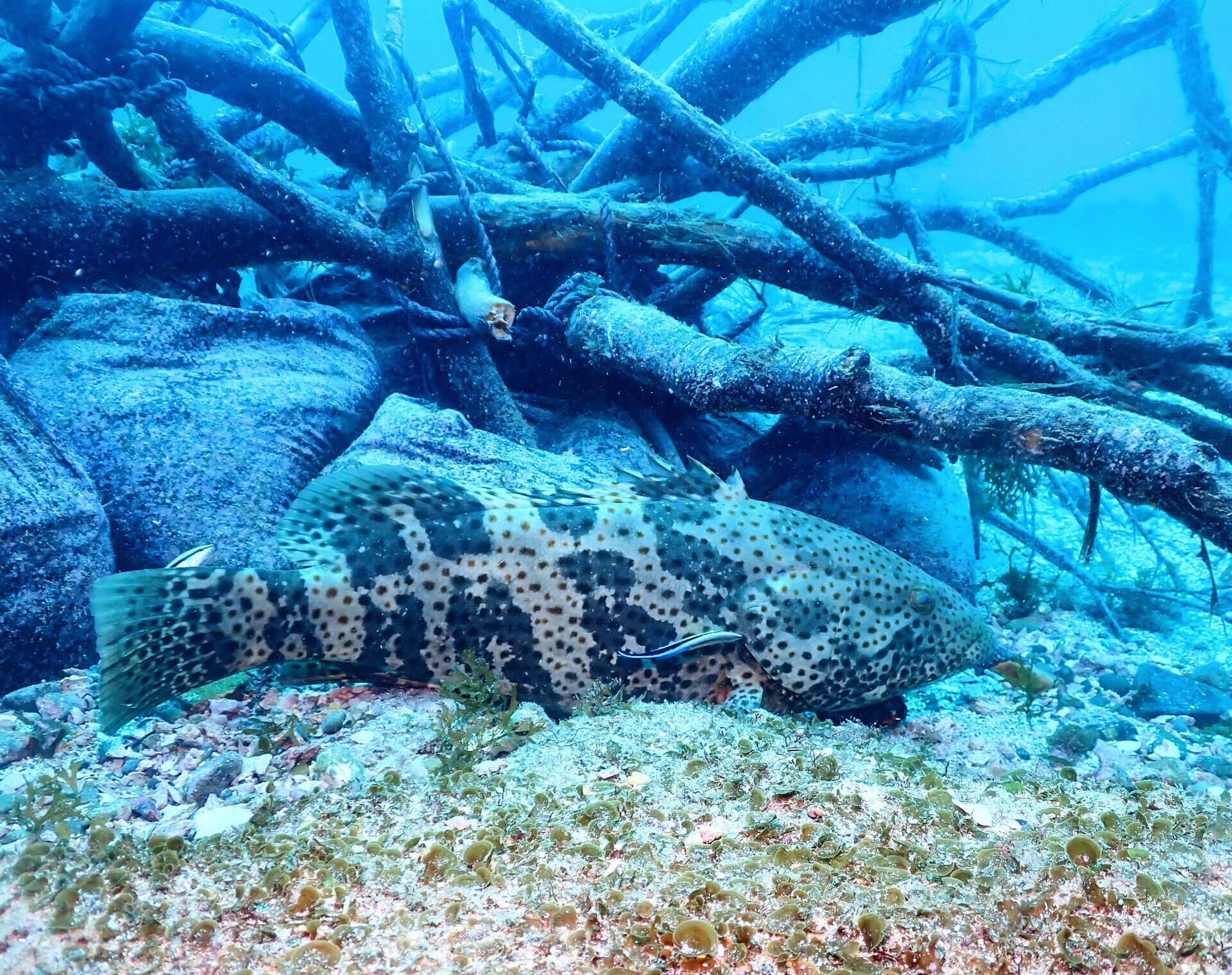 クリーニングされているチャイロマルハタ。