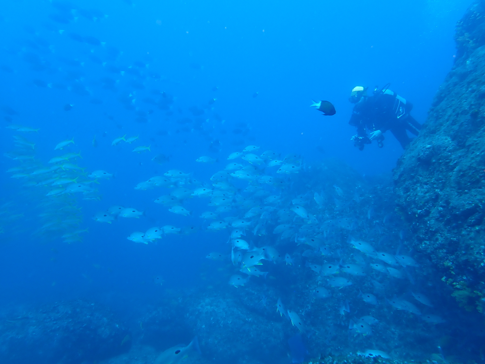 浅場に向かうと、キビナゴ達が雲のよう。