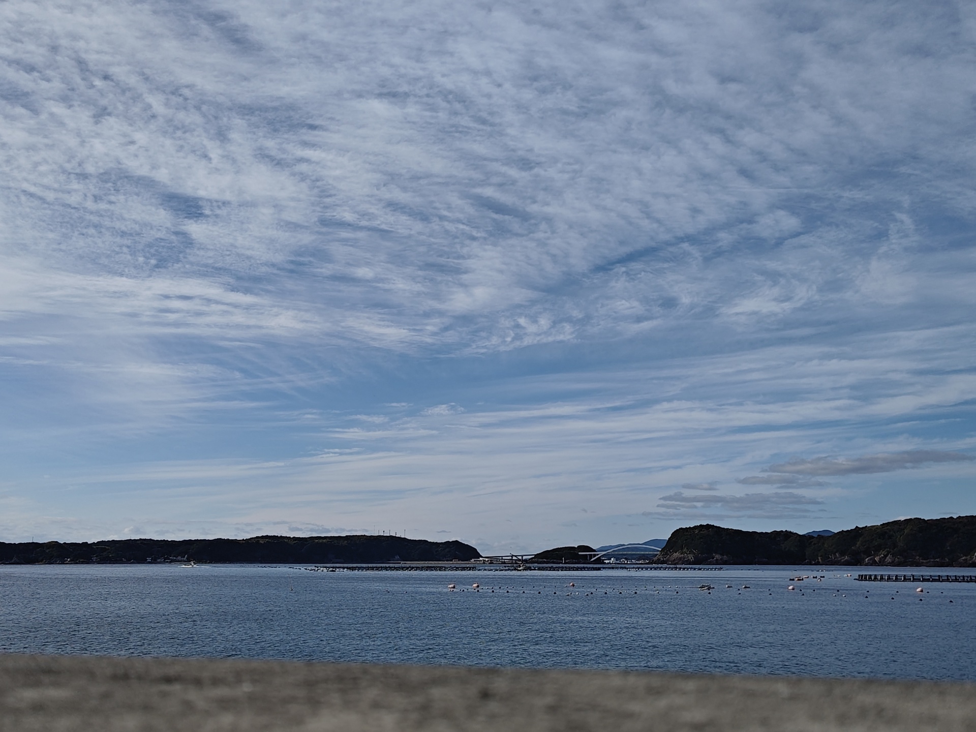 防波堤先端あたりから、串本大橋方面。