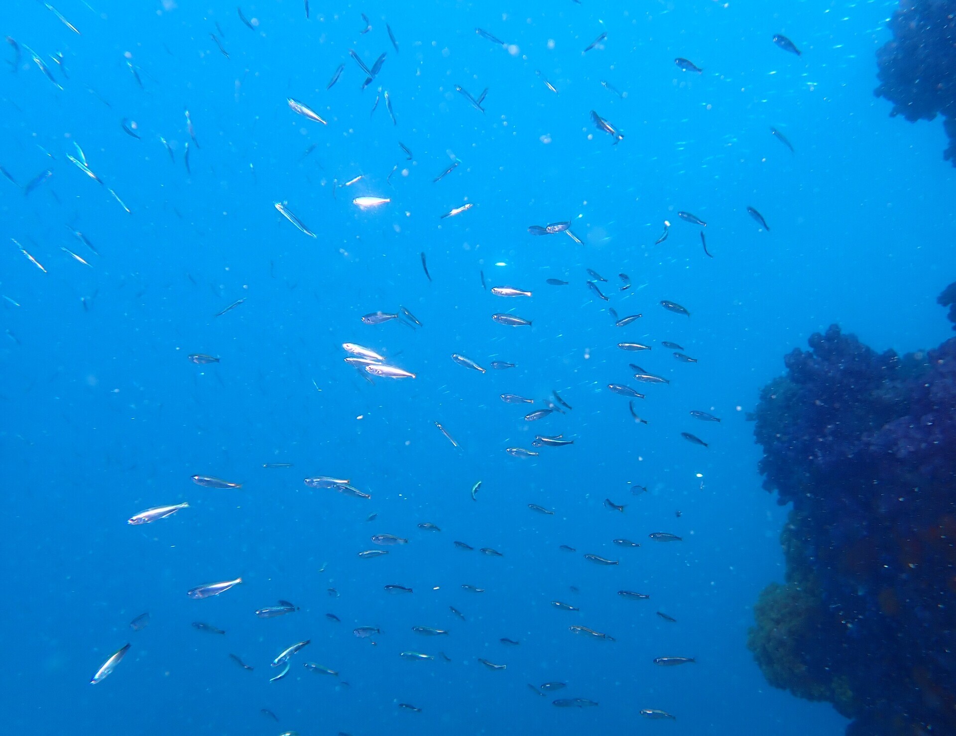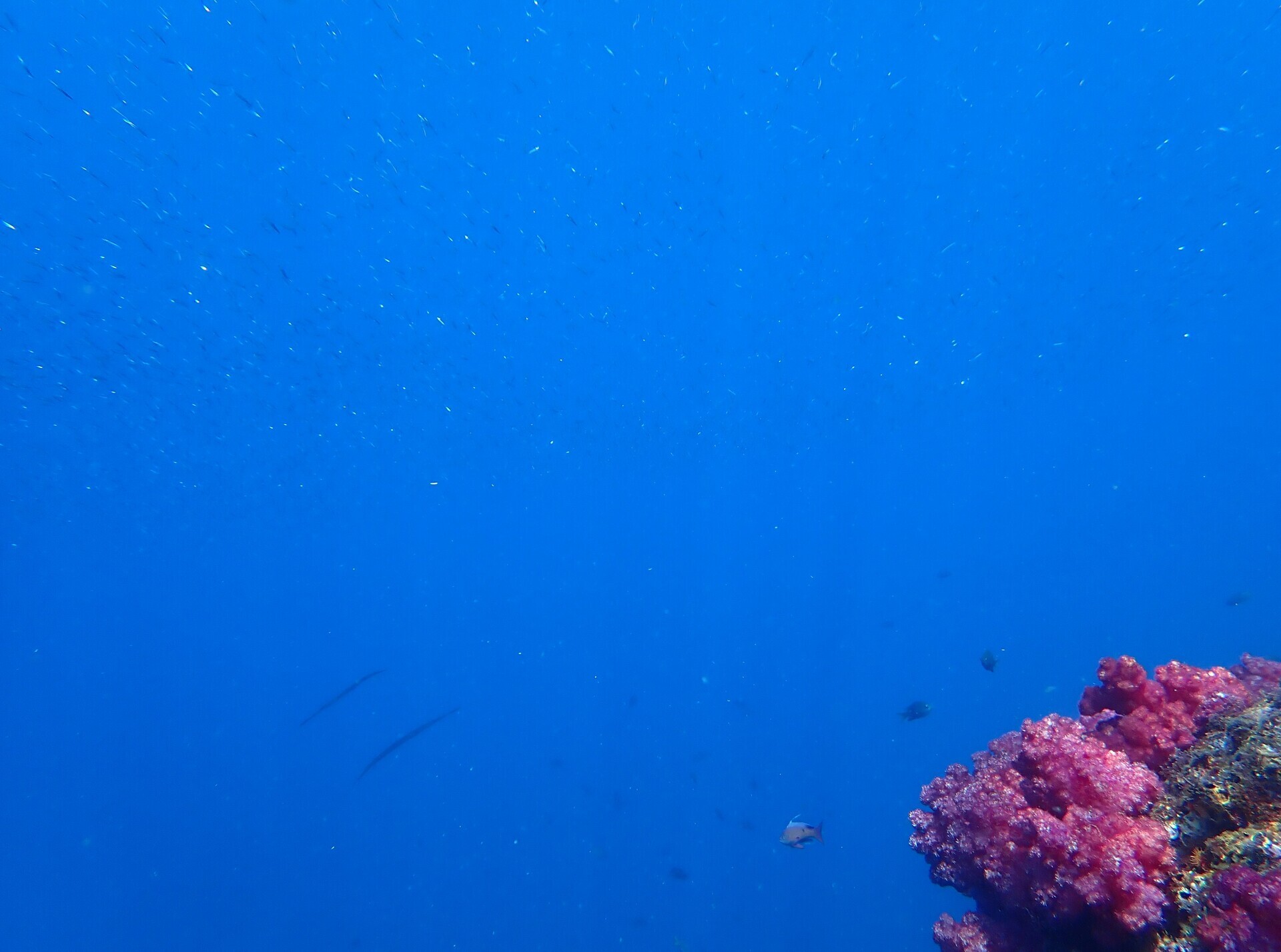 日差しが良く、浅い所のソフトコーラルが綺麗。